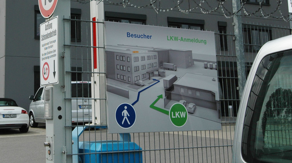 Wegeführungs-Information an einer Werkszufahrt